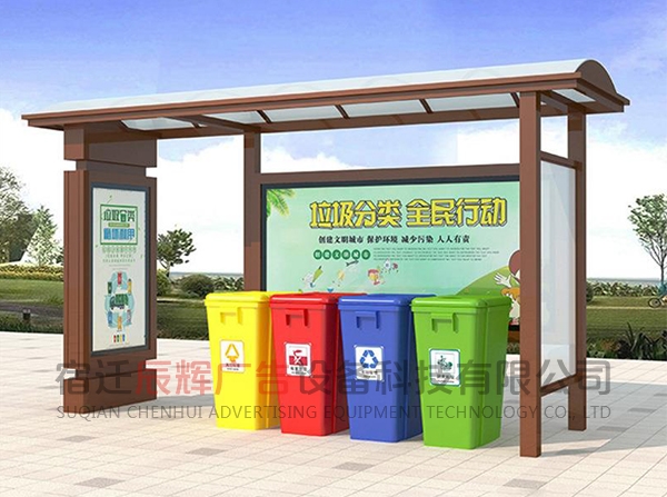 垃圾分類亭一般放在小區(qū)或者公共的地方集合垃圾之用。同樣的材料也可制成配電房、報亭、崗亭、景區(qū)休息室等。宿遷辰輝廣告設備科技有限公司,我們的產品豐富多元化,應用場景廣泛,也可以根據客戶的需要來圖定做。